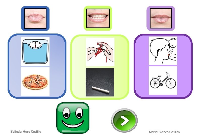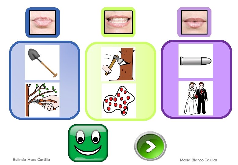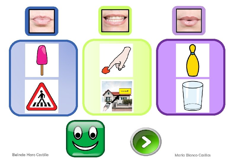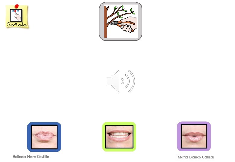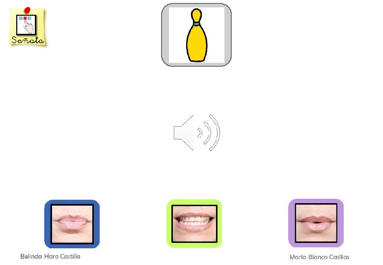 OBJETIVO GENERAL: - Mejorar o desarrollar la discriminación auditiva para evitar confusiones con fonemas similares. OBJETIVO ESPECÍFICO: - Discriminar el fonema /P/ de otros fonemas similares por su modo de articulación. DESARROLLO DE LA ACTIVIDAD: En esta actividad el alumno/a deberá seleccionar el articulema que representa al fonema que suena dentro de la palabra. Os recordamos que el fonema puede encontrarse en cualquier posición de la palabra. Por ejemplo, si trabajamos el fonema /P/, puede aparecer en sílaba inicial como en “palo” o en sílaba final como en “mapa”. Las palabras mostradas estarán representadas por un pictograma en la parte superior y debajo tendrán el icono de un altavoz para poder ser escuchadas. Una vez seleccionado el fonema/articulema con el que se corresponde, surgirá una nueva imagen y tendrá que identificar de nuevo qué sonido se escucha dentro de dicha palabra. Por último, cuando la serie esté completada, aparecerán todos los pictogramas sobre el articulema correspondiente y aparecerá un botón para pasar a la diapositiva de premio. · VARIANTES: 1. Decir otras palabras que contengan los sonidos representados por los articulemas. 2. Realizar frases con las distintas imágenes, 3. Añadir el artículo delante de cada imagen. 4. Incluir las imágenes en diferentes categorías semánticas: animales, objetos… 5. Pragmática: qué es, para qué sirve… PALABRAS USADAS POR PÁGINA: 1. Beso – peso – tejo. 2. Tiza – pizza – bici. 3. Tala – bala – pala. 4. Boda – poda – toda. 5. Bolo – polo – toco. 6. Paso – taso – vaso.