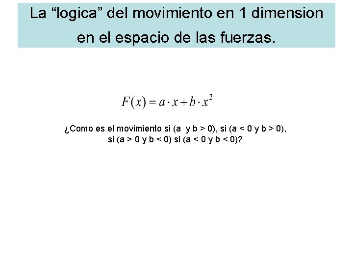 La “logica” del movimiento en 1 dimension en el espacio de las fuerzas. ¿Que soluciones existen en este rango?