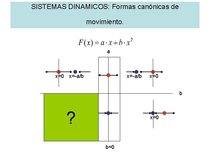 SISTEMAS DINAMICOS: Formas canónicas de movimiento. a x=0 x=-a/b x=0 b ? x=0 b=0