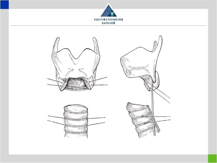 Laryngotracheal Resection Technique • These resections are different and more complex than a regular tracheal resection • Subglottic laryngeal airway is narrow and usually affected by scar formation • Laryngotracheal anastomosis requires at least 6 mm of a healthy distance beyond the vocal cords