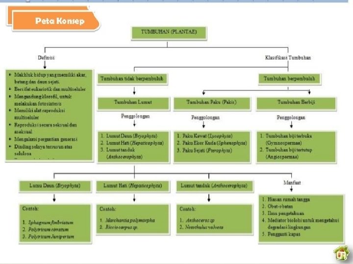 Angiospermae Karakteristik Ø Bakal biji diselubungi daun buah (karpela) yang merupakan bakal buah/biji tertutup Ø Berupa herba, perdu atau pohon Ø Berumah satu atau berumah dua Ø Mempunyai organ yang berupa bunga lengkap Ø Alat perkembangbiakan berupa bunga Ø Reproduksinya diawali dengan adanya proses penyerbukan dan proses pembuahan, selanjutnya zigot berkembang menjadi embrio dan kemudian buah. Ø Disebut pembuahan ganda, karena dua inti generatif masing-masing membuahi sel telur yang akan menjadi lembaga dan inti kandungan lembaga menjadi endosperm