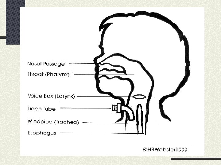 Speech Techniques to promote speech Tracheostomy tubes and valves have been designed to facilitate speech. n Promote use to provide psychologic benefit and self-care. n