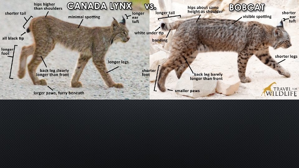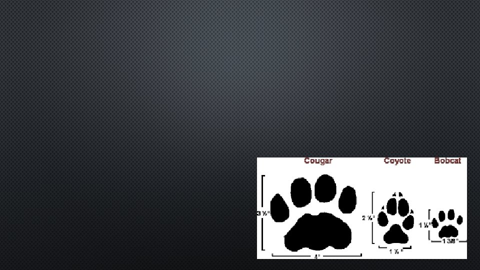 COYOTE & WOLF – SIZE & HABITAT TO ID • LOWER PENINSULA – COYOTE • UPPER PENINSULA – BOTH • IN TOWN – COYOTE MOST LIKELY • SIZE – WOLF UP TO 5” LONG • - COYOTE 3” LONG