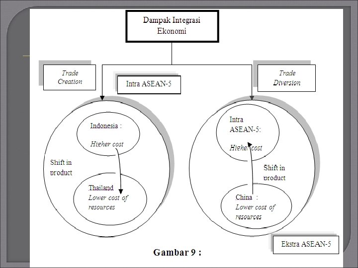 Pergeseran impor barang dari produsen yang berbiaya rendah ke produsen yang berbiaya tinggi ini diidentifikasi sebagai adanya trade diversion yang diakibatkan oleh adanya integrasi ekonomi.