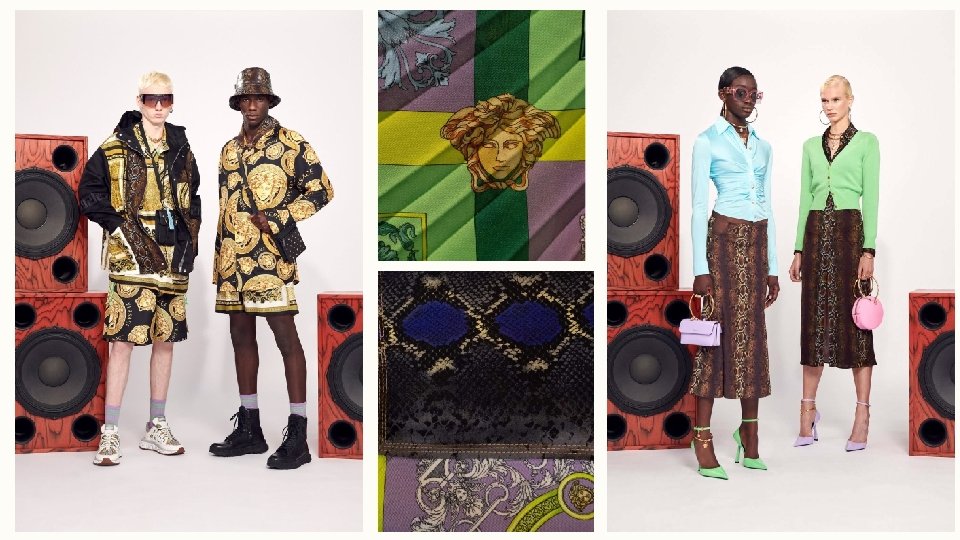 VERSACE BRAND [ 范思哲] Italian fashion brand Versace presented Resort 2021 Flash Collection that was inspired by the attitude of young musicians, who are pursuing their goals and disrupting the status quo, while exploring different styles. The collection will launch in two distinct drops: Flash Teaser – August 2020 – that features selection of summer statement pieces, and Flash Main – November 2020 – that will contain a full offering of Transeasonal ready-to-wear and accessories for all genders 意大利�尚品牌范思哲( Versace)推出的2021年度假�光系列,灵感来 自年�音�家的�度,他�追求自己的目�,打破�状,同�探索不同 的�格。�系列将分�两个不同的系列推出:�光挑逗 —— 2020年 8月— — 精�夏季个性�品 。 Flash Main—— 2020年 11月——将�所有性�提 供跨季�的成衣和配�