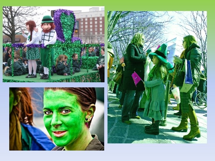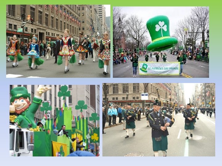 Saint Patrick’s day è considerato il più grande festival annuale irlandese, una vera e propria kermesse di quattro giorni all’insegna della musica più sfrenata, degli spettacoli teatrali, del divertimento, caratterizzata da parate in costume, recite di strada, fuochi d’artificio, e spettacoli di danza di ogni genere. . . il tutto realizzato con quella speciale simpatia che da sempre contraddistingue il popolo irlandese.