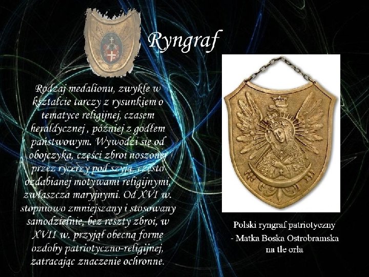� Punktem wyjścia historii polskiego ryngrafu jest kaplerz rycerski używany przez wojsko polskie już na przełomie XVI i XVII wieku.