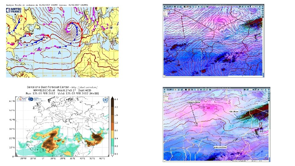 The uplift of dust has started on the 1 st February 2017 over the region of Faya Largeau (Chad), the principal source of dust raised over the world. However, the H-24 RGB Microphysics satellite imagery on the 1 st February 2017 shown a relatively cleared sky over Niger, except over the extreme Northern Manga. A widespread dust haze was observed over Niger Republic on the 2 nd, 3 rd and 4 th February 2017. This present case study, illustrated the genesis of that situation by showing up the scientific explanations. The dust propagation, once uplifted over the Chad, having a trajectory East to West, the UKMet, ARPEGE models and also the Barcelona dust prediction centre have well predicted this dense suspension of dust over the Eastern part of Niger Republic (Diffa and Zinder) and also over the Northern regions (Bilma and Agadez), except over the Niger river’s areas. 9100 8100 7100 6100 5100 4100 3100 2100 100 VISI 0600 Z VISI 0900 Z ry bé ya lla Ti Ga o ss Do ey am ez Ni a Ag ad lm Bi ua ho ni Ta Ko n ad i ar ia ar ag M r de M Zin ur é Go né ai M ffa Di Gu igm i VISI 1800 Z N' Visiblité (m) Variation of horizontal visibility at 0600 Z, 0900 Z et 1800 Z over Niger synoptic stations, 2 nd february 2017
