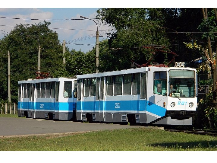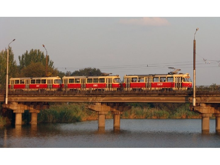 Doplnění k technologii provozu • • • samostatný dopravní podnik denní provoz od 4: 30 do 23: 30 intervaly ve špičce od 2 do 9 minut intervaly v sedle 10 až 30 minut hlášení jen v ukrajinštině, nespolehlivé dvou- a třívozové tramvajové soupravy tramvaje T 3 SU, T 3 M, KT 3 UA, 71 -611 hlídané stanice policisty platba žetony za 60 kopějek