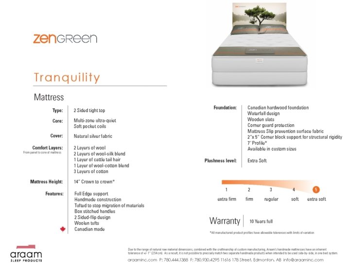 Line-up at a glance… Model Size Harmony Queen Serenity Queen Tranquilit Queen y SKU # Description 1884 -1050 Harmony Firm 2 Sided Queen set 1883 -1050 1882 -1050 Serenity Regular 2 Sided Queen set Tranquility Soft Queen set Wholesal e $1, 486 $2, 168 $3, 008 Retail Core Comfort Layers Profile $3, 269 Firm Multi zone Ultra-quiet pocket coil 6 total layers of Wool, Silk, Cotton & Cattle tail 10” 8 total layers of Wool, Silk, Cotton & Cattle tail hair 12” 10 total layers of Wool, Silk, Cotton & Cattle tail hair 14” $4, 770 $6, 618 Regular Multi zone Ultra-quiet pocket coil Soft Multi zone Ultra-quiet pocket coil