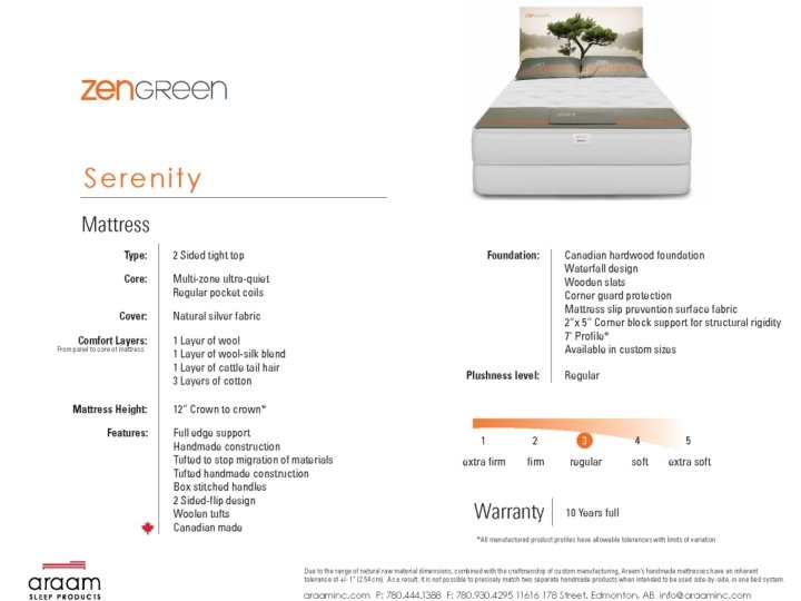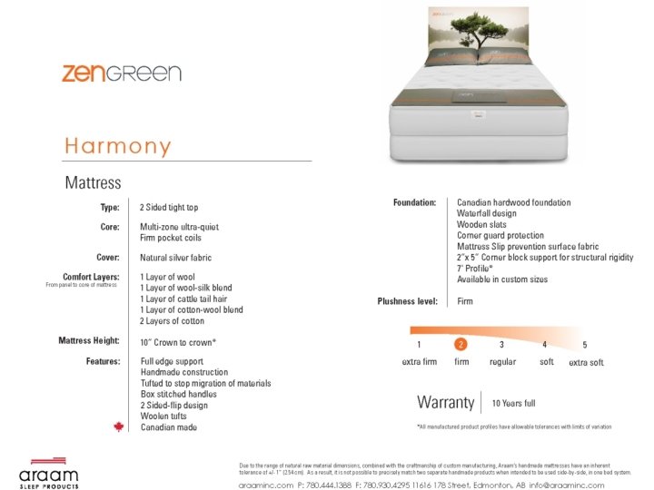 Who is Araam? • Araam Sleep Products is a privately held mattress manufacturing company based out of Edmonton, Alberta. • Founded in 2002, Araam has quickly established itself as one of Canada’s premiere mattress manufacturers of both standard and custom mattresses. • Dedicated to constant innovation in product design, materials, machinery, and craft. • Form follows function in product design and production. • Handcrafted, hand made product of the finest materials. • A true partner in business that brings integrity to the forefront. • Custom designed product that holds no bounds. If you can think it, we