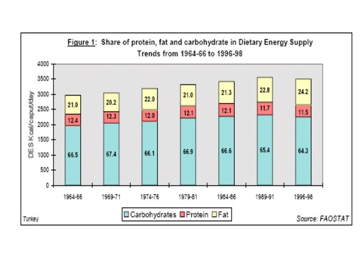Birleşik Krallık’ta (NFS data) 60 %20 - 30 50 % Diyet enerjisi karbonhidrat Obezite 40 30 yağ %12 - 20 2000 1998 1996 1994 1992 yıllar 1990