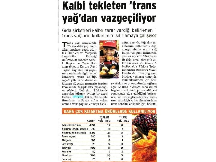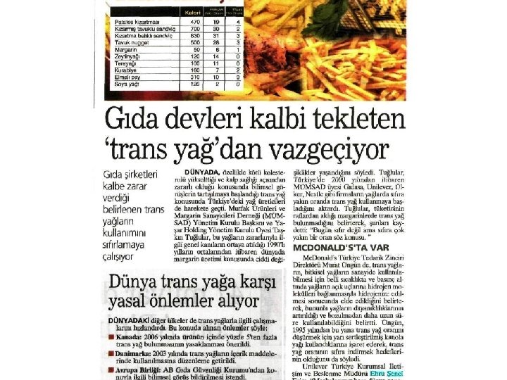 Trans Yağlar ve Sağlık Etkileşimi Prof Dr. H. Tanju Besler Hacettepe Üniversitesi Beslenme ve Diyetetik Bölümü