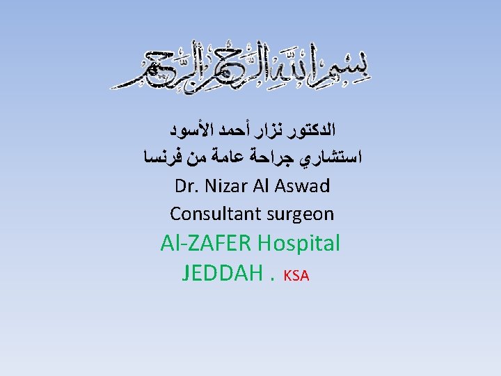 THANK YOU Dr. Nizar Al Aswad E-mail : drnizaralaswad@yahoo. com Mobil : 00966 503719833