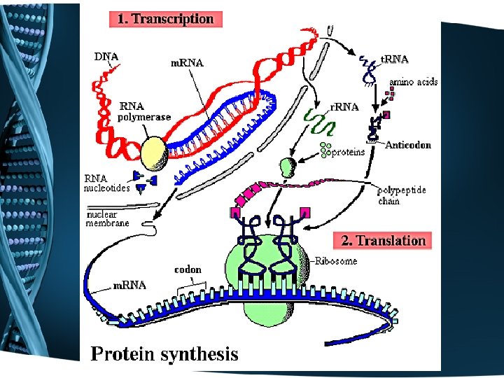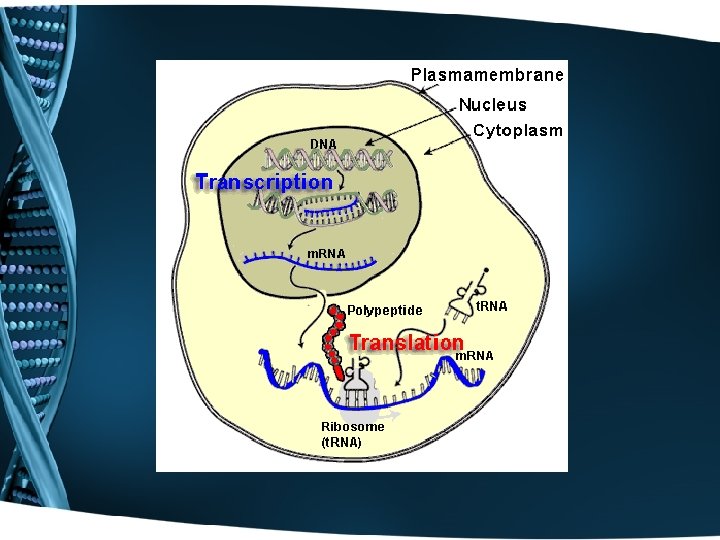 How do we take the genetic code and actually make something from it? • Well, first we have to get the code “heard” • Then we have to convert it to a language that is understood • Processes of: – Transcription – Translation