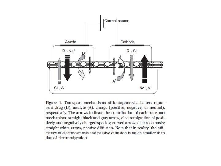 Iontophoretic Patches • Iontophoretic patches use a tiny electrical current to promote flow of the drug (usually charged) through the skin.
