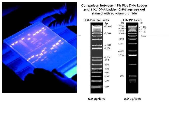Sensibilidad del colorante SYBER-SAFE 50 ng 25 12. 5 6. 25 3. 125 50 25 12. 5 6. 25 3. 125 Gel de Agarosa al 1. 5% Teñido con Bromuro de Etidio Teñido con SYBER-SAFE