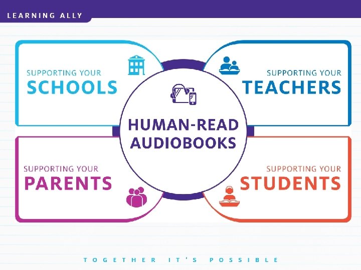 The Learning Ally Solution Includes: ü Unlimited Year Round Access for Eligible Students ü Educator Training and Support ü In Classroom Resources and Programs ü Unlimited access to 80, 000 books ü Unlimited access to Learning Ally Link for: ü i. OS devices ü PC/MAC ü Chromebook ü Android Devices