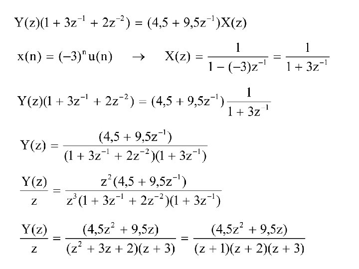Contoh Soal 8. 16 Tentukan output dari suatu sistem LTI (Linear Time Invariant) yang dinyatakan oleh persamaan beda : dan mendapat input x(n) = (-3)nu(n) Jawab: