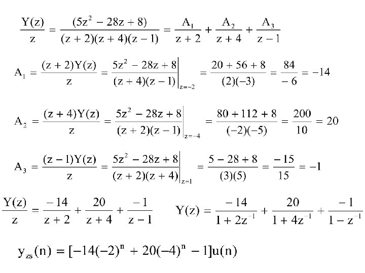 § Ekspansi fraksi-parsial dan tabel transformasi-z Contoh Soal 8. 14 Tentukan transformasi-z balik dari Jawab: