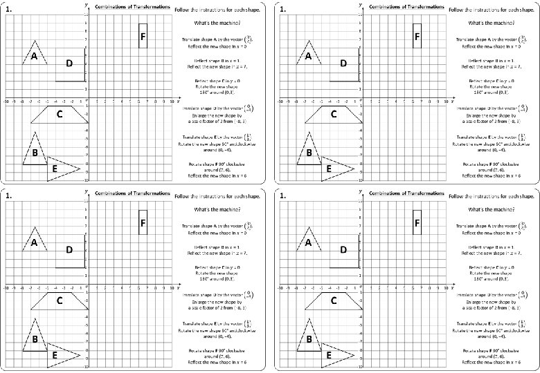 Combinations of Transformations 1. Follow the instructions for each shape. What’s the machine? F A D C B E