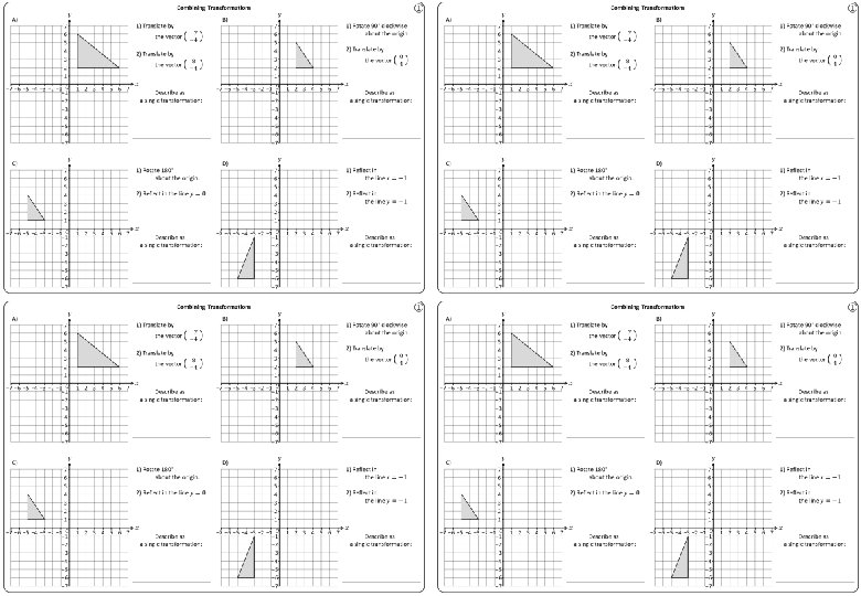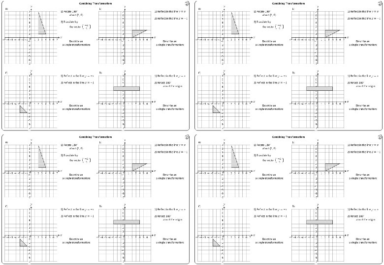 Transformations – Combinations – Worksheet C Worksheets increase in difficulty and are in 2 sizes.