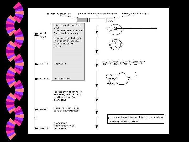 Transgenic production w Transgenic mice are often generated to 1. characterize the ability of