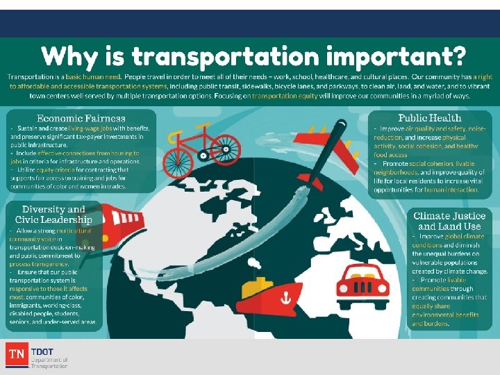TDOT’s Role in Transit • Administer the Federal Program (FTA) • Partner in Funding (Federal and State) • Partner in Planning and Projects (Corridor Studies, Long Range Plans) • Lead Regional Transit programs (i. e. Swipe and Ride, Park and Ride)
