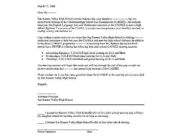 Impact on Special Education Ø As of October 29, 2006, high school seniors with documented disabilities were allowed to graduate in that year, even if they did not pass the CAHSEE. Ø As of 2008, students (reg. ed. / spec ed. ) must pass the exam in order to receive a diploma. There is no longer in a waiver for special education