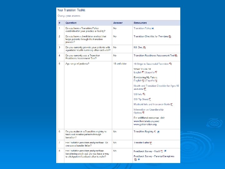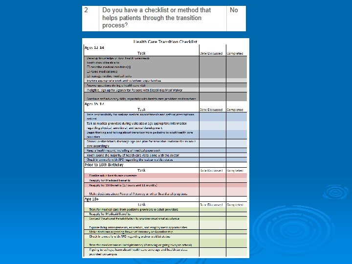 1. Do you have a practice policy for transitioning patients to an adult model of care? 2. What steps do you take to prepare adolescents and their families for the change?