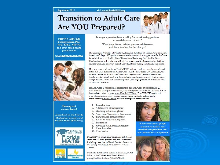 Florida’s clearinghouse for health care transition information at www. Florida. HATS. org