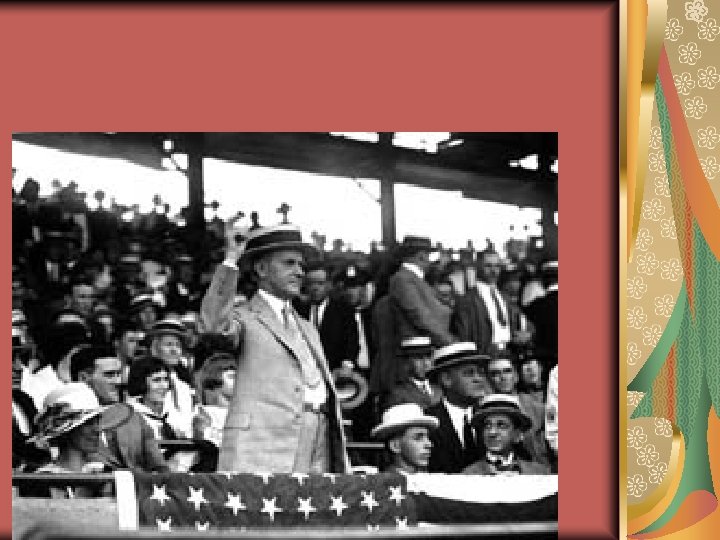 Harding, Coolidge, and Hoover Republican presidents appeal to traditional American values Harding scandals break after his death Coolidge represents America in his austerity and rectitude Hoover represents the selfmade man