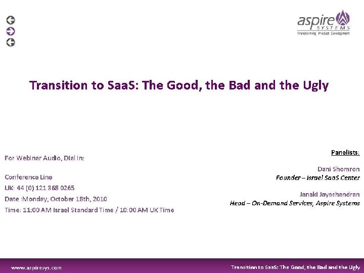 Transition to Saa. S The Good the Bad Almost Great and the Ugly Interesting Dani Shomron October 2010