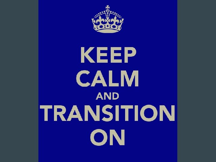Stages of Transition • • Elation (Honeymoon) Resistance (Negotiation) Transformation (Adjustment) Integration (Mastery)