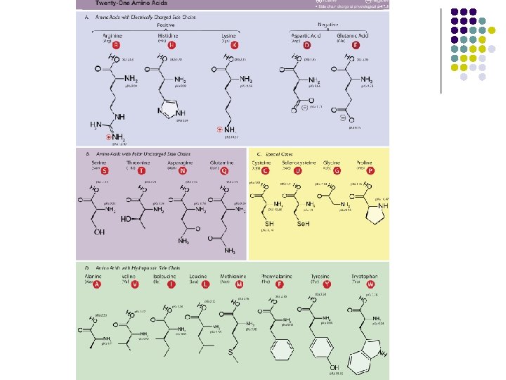 Remember amino acids? l l There are 20 (some textbooks say 21 or 22 because there are variants) R represents a side-chain specific to each amino acid.