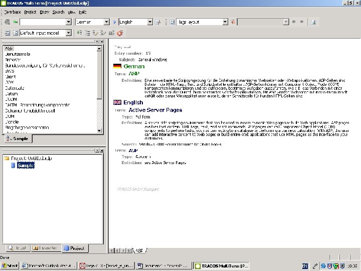 Terminology management and translation processing (Translation memory) • A translation memory is a kind of linguistic • • database used to store source texts and their translations. Each text is broken down into short segments. Each source text segment and its translated equivalent then make up a translation unit. In other words, it is a searchable collection of translation units. In its simplest form, a translation memory can be viewed as a list of source text segment that are explicitly aligned with their target counterparts