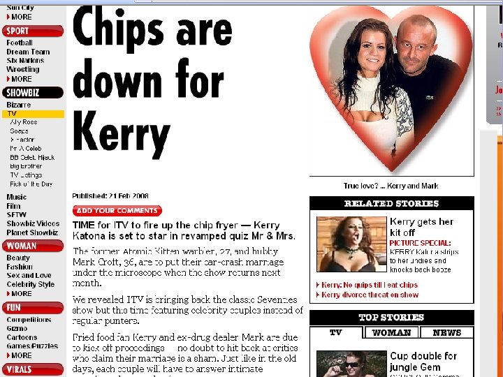Internationalized version (back translated from Spanish) It is time for the British television to launch Kerry Katona as a presenter. She will participate in the show called Mr. and lady. The previous member of the atomic kitten the music band, that is 27, and the husband, Mark Croft, who is 36 will examine their union in this new show the next month. We revealed that ITV will bring this old show back. This time will offer pairs of celebrities instead of regular guests. Kerry and mark will be the first guests in the show. They are participating to convince the public that their union is true. LIKE in the past, each pair will have to answer intimate questions on one another.