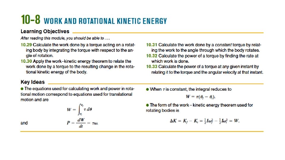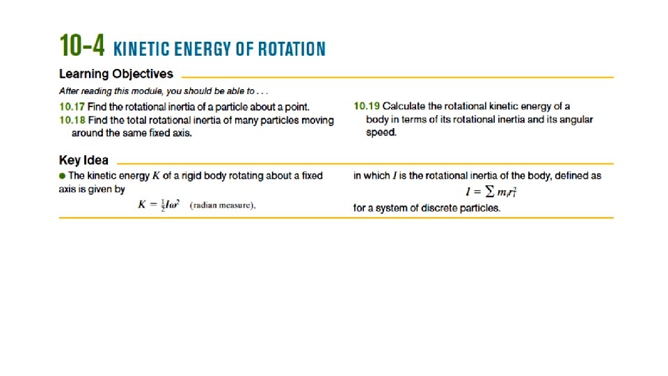 Rotational Kinetic Energy The total kinetic energy of an extended object can be expressed as the sum of the translational kinetic energy of the center of mass and the rotational kinetic energy about the center of mass. Work-Energy Principle The expressions for rotational and linear kinetic energy can be developed in a parallel manner from the work-energy principle. mad = m {(v 2 - v 02)/2}d W = 1/2 m(v 2 - v 02) = KEf - KEi.