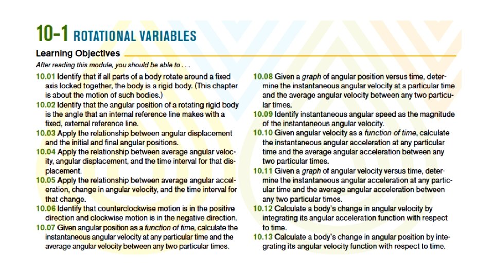 Translational Motion Translational motion is the motion by which a body (or its the center of mass) shifts from one point in space to another. One example of translational motion is the motion of a bullet fired from a gun. Rotational Motion Rotational motion deals only with rigid bodies. A rigid body is an object that retains its overall shape, meaning that the particles that make up the rigid body remain in the same position relative to one another. A wheel and rotor of a motor are common examples of rigid bodies that commonly appear in questions involving rotational motion. Difference between rotational and Circular motions In rotational motion, a rigid body of significant size is studied, and it is rotating about one particular axis. Speed varies significantly throughout the body's fibers. Circular motion is a special case of rotational motion.