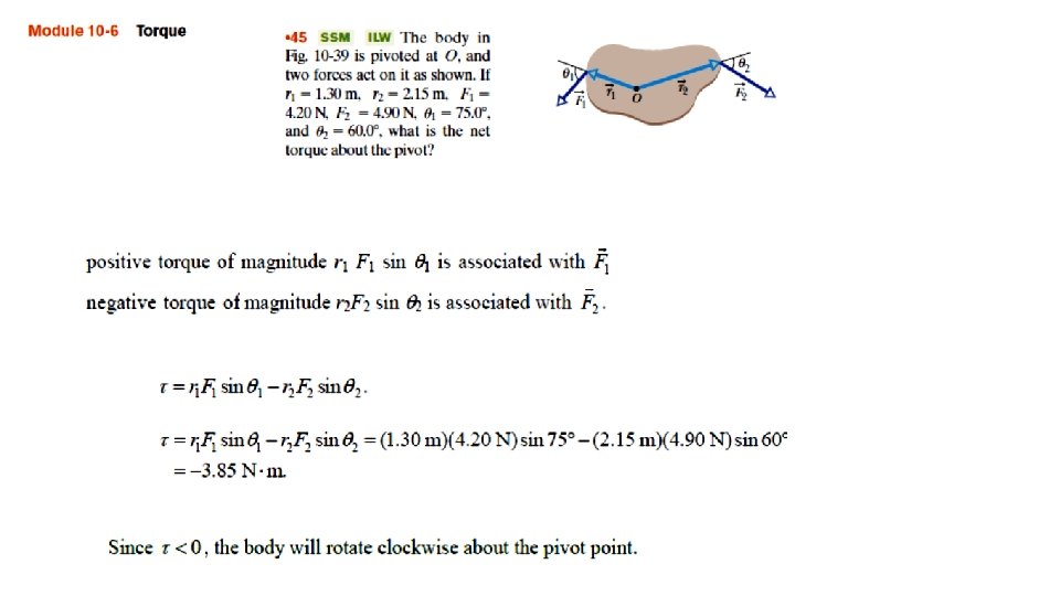 • 47 A small ball of mass 0. 75 kg is attached to one end of a 1. 25 -m-long massless rod, and the other end of the rod is hung from a pivot. When the resulting pendulum is 30 o from the vertical, what is the magnitude of the gravitational torque calculated about the pivot?
