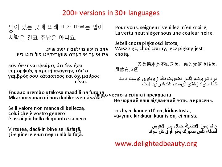 If virtue no delighted beauty lack, Your son-in-law is far more fair than black. Duke of Venice: William Shakespeare, Othello, the Moor of Venice