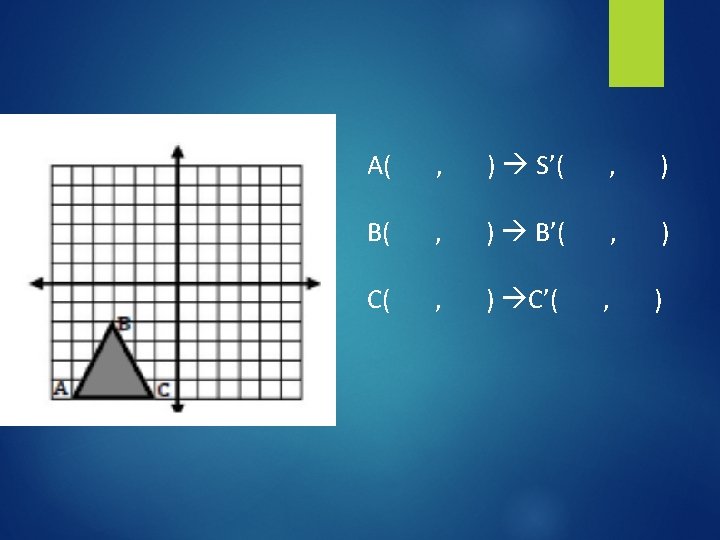 List the ordered pairs and decide what transformation took place. Q( , ) Q’( R( , ) R’( S( , ) S’( , ) , , ) )