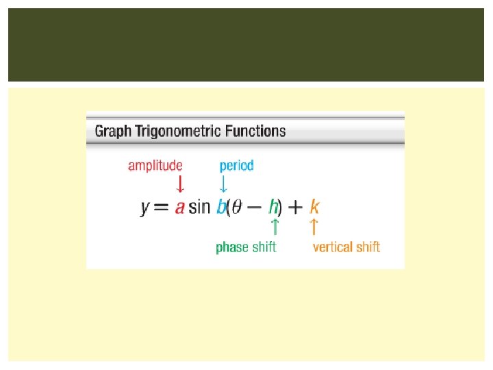 EXAMPLE 1: Find the period and the amplitude. Use it to find a possible equation for the function.
