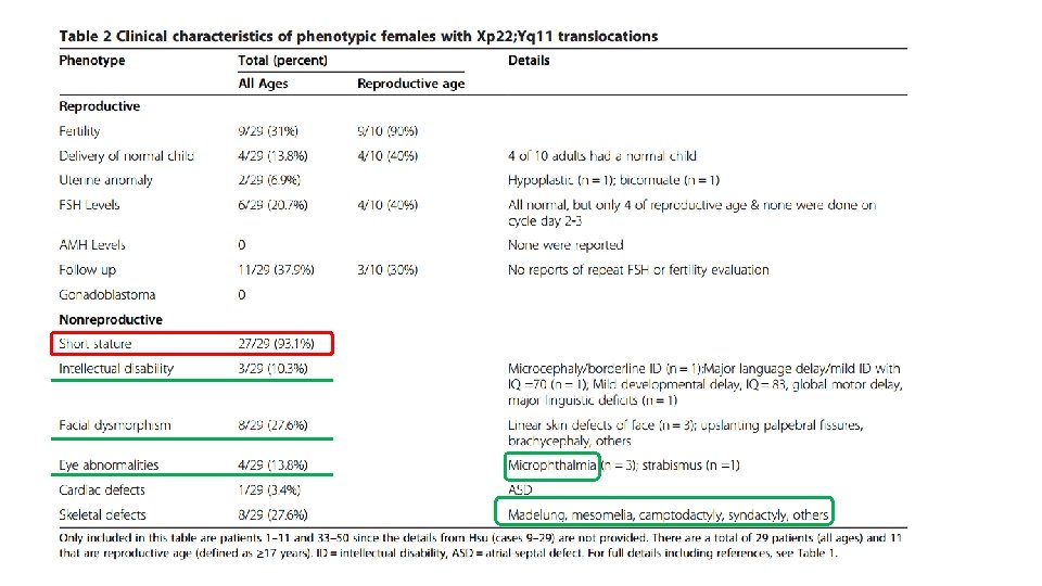 télomère Margari L et al, 2014 Bukvic N et al, 2010 Xp 22. 33 SHOX : 585, 079 -620, 146 Xp 22. 33 ARSE : 2, 852, 673 -2, 885, 494 Xp 22. 32 NLGN 4 : 5, 808, 067 -6, 145, 888 Xp 22. 31 VCX 3 A : 6, 451, 659 -6, 453, 159 Xp 22. 31 STS : 7, 065, 293 -7, 272, 684 Ichtyose liée à l’X Xp 22. 31 KAL 1 : 8, 528, 873 -8, 732, 186 Syndrome de Kallmann Xp 22. 2 HCCS : 11, 111, 285 -11, 123, 085 Syndrome de MIDAS ou MLS cen Dyschondrostéose de Léri-Weill Dyschondroplasie ponctuée Anophtalmie G Microphtalmie D DI Autisme Anomalies squelettiques (micromélie, scoliose) Déficience intellectuelle, autisme Anomalies cutanées anomalies squelettiques (mésomélie, anomalie de madelung) DI Retard de croissance isolée