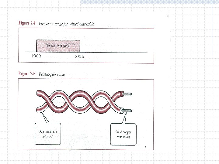 Twisted Pair - Transmission Characteristics Analog n Amplifiers every 5 km to 6 km Digital n repeater every 2 km or 3 km Limited distance Limited bandwidth (1 MHz) Limited data rate (100 MHz) 10
