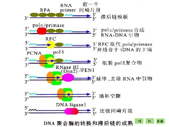 (二)Eukaryotic DNA polymerases DNA-pol Priming replication DNA-pol Mitochondeial DNA replication DNA-pol Major replication polymerases DNA-pol
