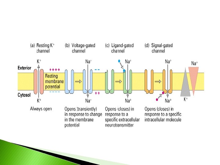 Voltage-Gated Channels � open in response to change in membrane potential � important in generation & conduction of action potentials
