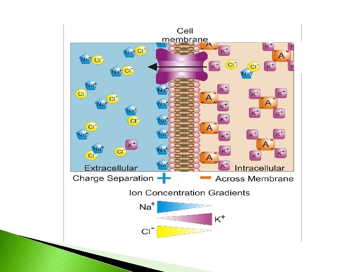 Resting Membrane Potential � exists because there is small build-up of (-) charge just inside plasma membrane small build-up of (+) charge just outside membrane � separation of charge source of PE � greater the difference in charge the larger the membrane potential (voltage)