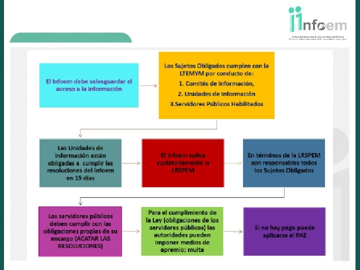 MEDIDAS DE APREMIO Art. 6. CPEUM y 5 CPELSM La ley establecerá las medidas de apremio que podrá imponer el organismo autónomo garante, para asegurar el cumplimiento de sus decisiones. Art. 82 LTAIPEM • Es causa de responsabilidad el hacer caso omiso de las resoluciones del Instituto. • El Infoem aplicará la LRSPEM a los servidores públicos que incumplan sus obligaciones (aplicación supletoria) Art. 70 LRSPEM • Para el cumplimiento de la Ley las autoridades podrán emplear como Medio de apremio la Sanción económica de hasta 20 veces el salario mínimo diario vigente en la capital del Estado