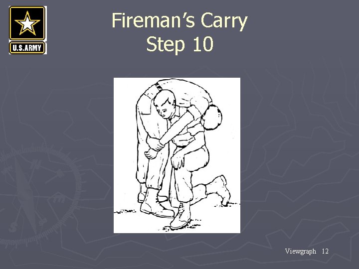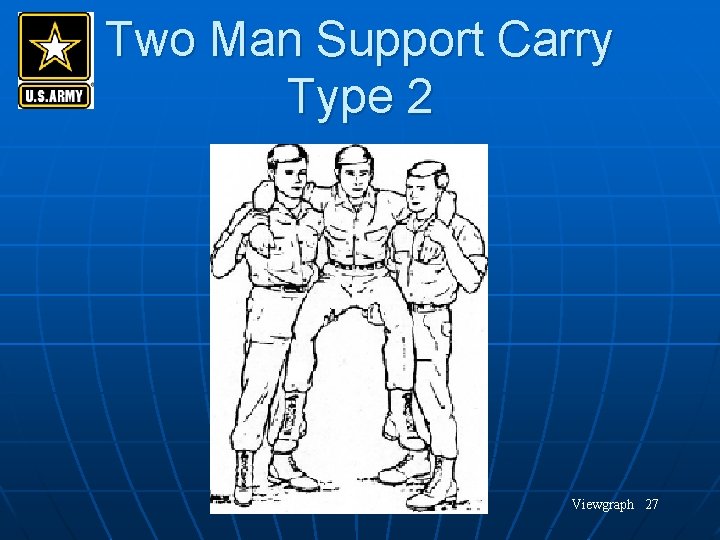 TRANSPORT A CASUALTY AWT 081 831 1046 FM Slides: 40 Download presentation TRANSPORT A CASUALTY AWT 081 -831 -1046 FM 4 -25. 11 Support Carry Viewgraph 2 Fireman’s Carry Step 1 Viewgraph 3 Fireman’s Carry Step 2 Viewgraph 4 Fireman’s Carry Step 3 Viewgraph 5 Fireman’s Carry Step 4 Viewgraph 6 Fireman’s Carry Step 5 Viewgraph 7 Fireman’s Carry Step 6 Viewgraph 8 Fireman’s Carry Step 7 Viewgraph 9 Fireman’s Carry Step 8 Viewgraph 10 Fireman’s Carry Step 9 Viewgraph 11 Fireman’s Carry Step 10 Viewgraph 12 Fireman’s Carry Step 11 Viewgraph 13 Arms Carry Viewgraph 14 Pack Strap Carry Step 1 Viewgraph 15 Pack Strap Carry Step 2 Viewgraph 16 Saddleback Carry Viewgraph 17 Pistol Belt Carry Step 1 Viewgraph 18 Pistol Belt Carry Step 2 Viewgraph 19 Pistol Belt Carry Step 4 Viewgraph 20 Pistol Belt Carry Step 5 Viewgraph 21 Pistol Belt Carry Step 6 Viewgraph 22 Pistol Belt Carry Step 8 Viewgraph 23 Pistol Belt Drag Viewgraph 24 Neck Drag Viewgraph 25 Two Man Support Carry Type 1 Viewgraph 26 Two Man Support Carry Type 2 Viewgraph 27 Two-Man Arms Carry Step 1 Viewgraph 28 Two-Man Arms Carry Step 2 Viewgraph 29 Two-Man Arms Carry Step 3 Viewgraph 30 Two-Man Arms Carry Step 4 Viewgraph 31 Four-Hand Seat Carry Step 1 Viewgraph 32 Four-Hand Seat Carry Step 2 Viewgraph 33 Fore-and-Aft Carry Type 1, Step 1 Viewgraph 34 Fore-and-Aft Carry Type 1, Step 2 Viewgraph 35 Fore-and-Aft Carry Type 2 Viewgraph 36 Improvised Litter With Poncho and Poles Step 1 Viewgraph 37 Improvised Litter With Poncho and Poles Step 2 Viewgraph 38 Improvised Litter with Poncho and Poles Step 3 Free edges of poncho are folded over the second pole. Viewgraph 39 §QUESTIONS?
